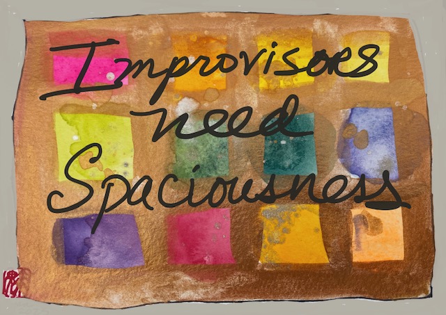 Staying Healthy: a Love Letter to the Professional ImproviserWritten by Patricia Ryan Madson – This article is from AIM Issue 2 (released November 2023). Paintings by Patricia Ryan Madson. I've been watching improv actors make magic for over thirty years.One of the deep joys of living in the San Francisco Bay Area of Northern California in the United States, is having access to a remarkable array of improvisational theater groups. I’ve been one of the lucky audience members for several thousand performances of “one of a kind” plays created out of sheer grit and magic on the spot. I’ve watched a number of groups come and go, form and dissolve, reform and spring back like the Phoenix. Among them were Pulp Playhouse, True Fiction Magazine, 3 For All, The Improv Playhouse of San Francisco, Awkward Dinner Party and two decades of BATS shows. The community of artists who perform this work are both saints and eccentrics, in my opinion. Their talent and courage - and endurance over time – astonishes me. I’ve been a theater person for half a century. I taught acting at Stanford University, spent summers doing stock with the Colorado Shakespeare Festival, the Nebraska Repertory Theatre and several raucous southern Outdoor Drama productions. I have not, however, trod the boards of the improv stage. It’s far too scary for me, I tell my students. I’m okay with a script. I like knowing when the show is over.